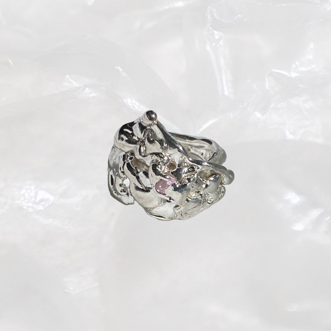 Ring made from 925 silver and zirconia in babypink. This ring is handmade, unique and only available once. Ringsize 50/51.