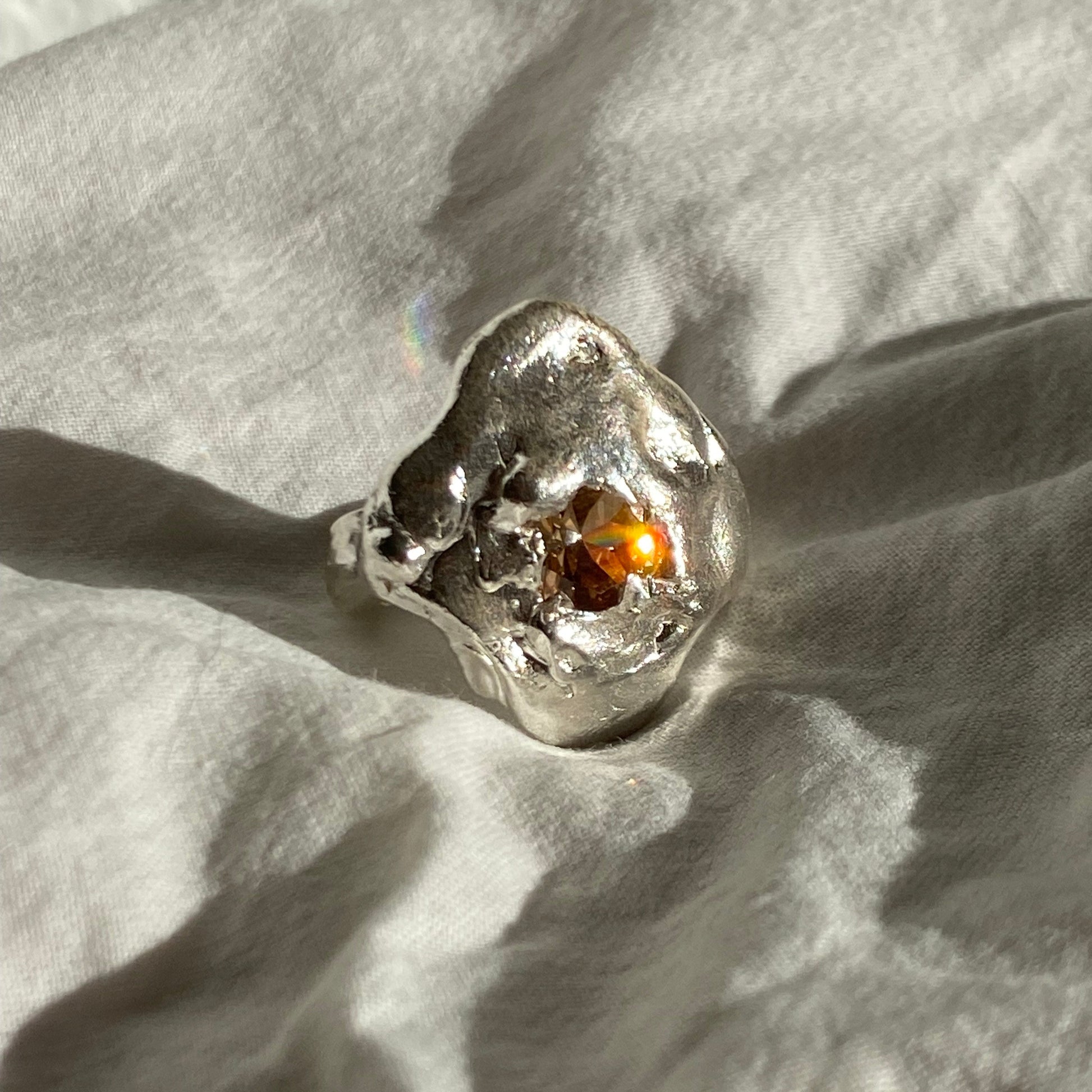 Handmade ring, 925 silver and brown cubic zirconia. Ringsize 59. The stone is a cubic zirconia with AAA quality and mohs hardness of 8,5.